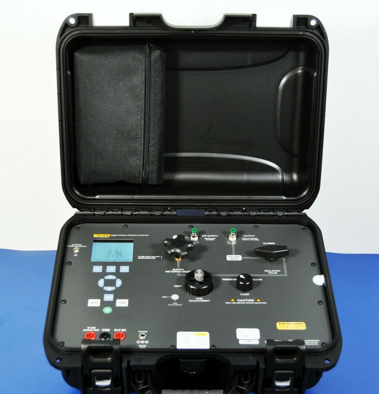 Loading... Please wait...Fluke 3130-G2M Pneumatic Pressure Calibrator. Includes Fluke Accredited Certificate of Calibration with two pages of calibration data, soft detachable accessory bag, red/black Fluke test leads with hard point tips, red/black alligator clips, power/charging cable, two pieces of pressure hose, two adapters (1/8" FNPT, 1/4" FBSP and 1/8" FNPT 1/4" FNPT) and 90 day warranty. All pictures are of the actual unit and accessories.
