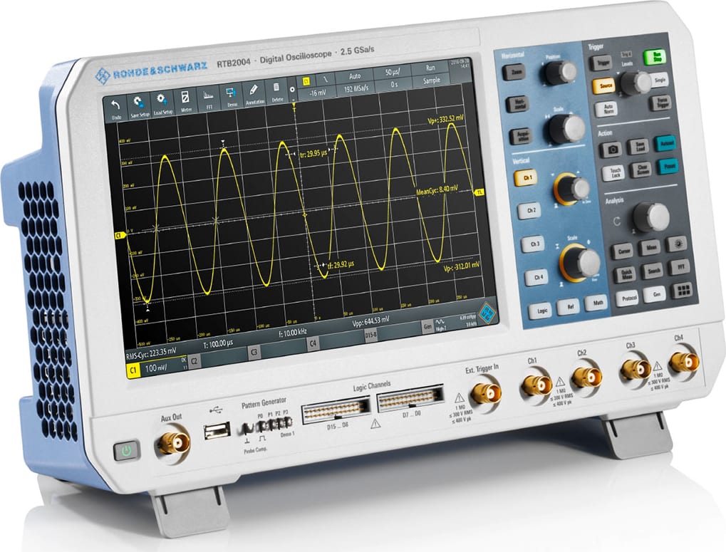 The Rohde Schwarz RTB2K-74M gives users more than just an oscilloscope. It also has the capabilities for a logic analyzer, protocol analyzer, waveform and pattern generator and digital voltmeter. Dedicated operating modes for frequency analysis, mask tests and long data acquisitions are also integrated. Debugging all kinds of electronic systems is easy and efficient – and satisfies the all-important rule of investment protection at a very attractive price.